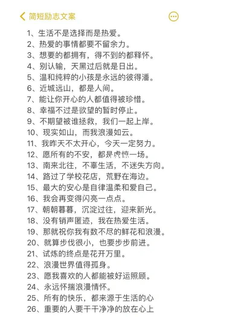 正能量励志文案短句1真正优秀的人,从来不是方方面面都超越他人,而是时时刻刻都在努力2我喜欢的人很优秀,我努力的原因是为了能够配得上他3世上有两种最耀眼的光芒,一种是太阳,一种是我们努力的模样4。