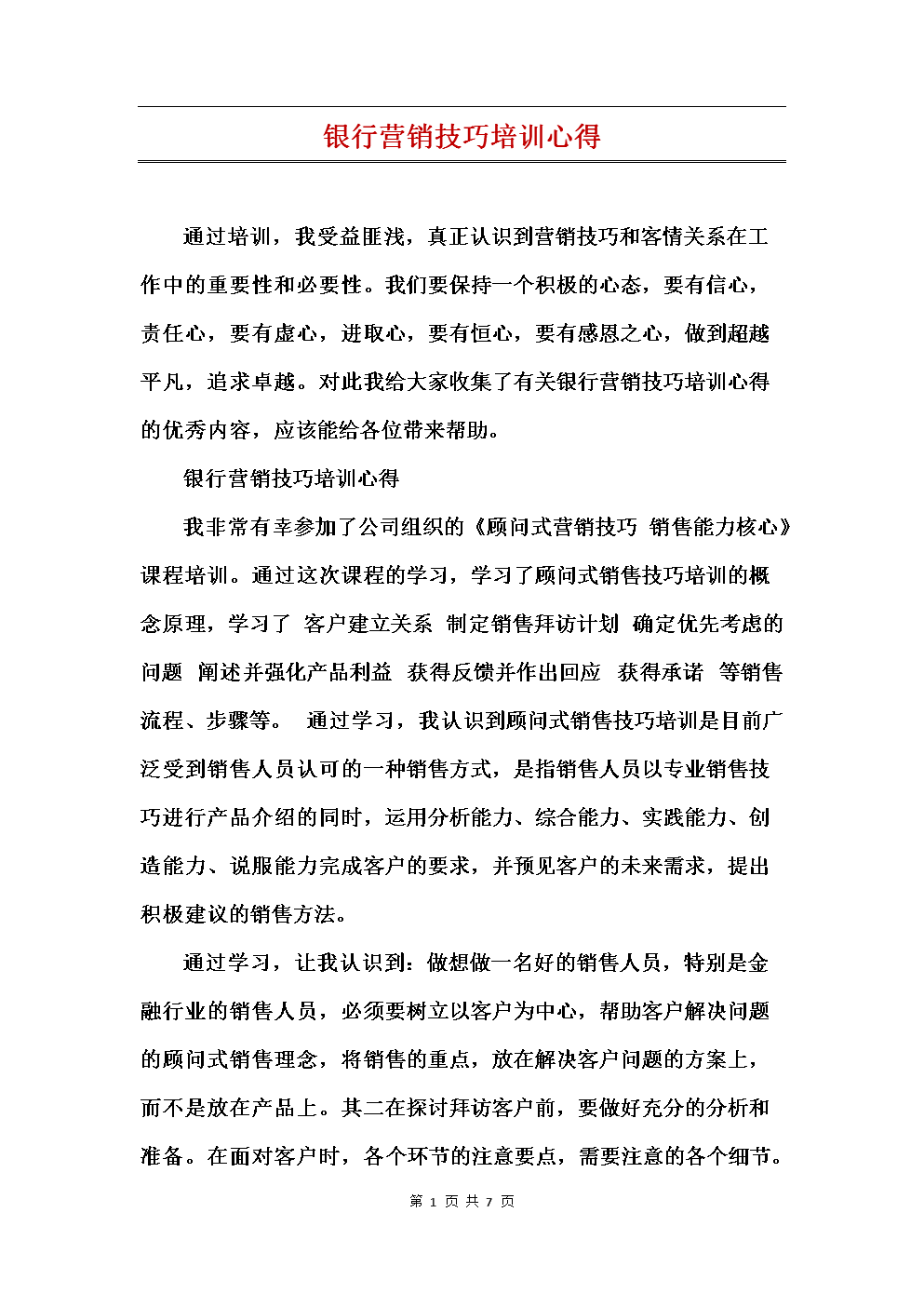 银行员工营销心得简短(银行员工营销培训心得体会简短)
