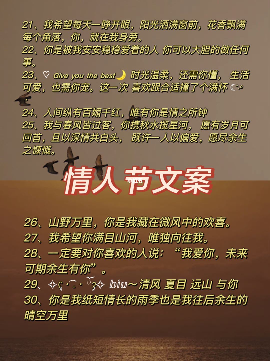 6任思绪狂飞,飞往天际,带走我的思念直达你的梦里带去我的温柔,送去我的爱意,我不在的日子里,愿甜蜜永远陪伴你,爱一时一刻不曾远离你7我们在人世间相遇相知,这是一种缘分,更是上天的一种安排,我们。