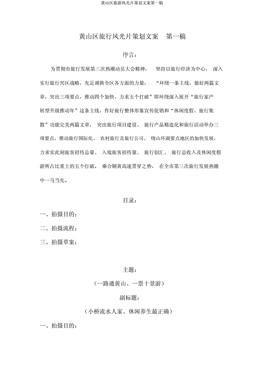 在宣传片制作中,创意是策划人员对宣传片的最高追求同样,在旅游宣传片的策划方案中,创意是旅游文案的生命旅游宣传片的创意应该以展现美丽景色,遐想的延伸以及舒适放松为主人们旅游便是为了放松心情,在旅游宣传片策划。