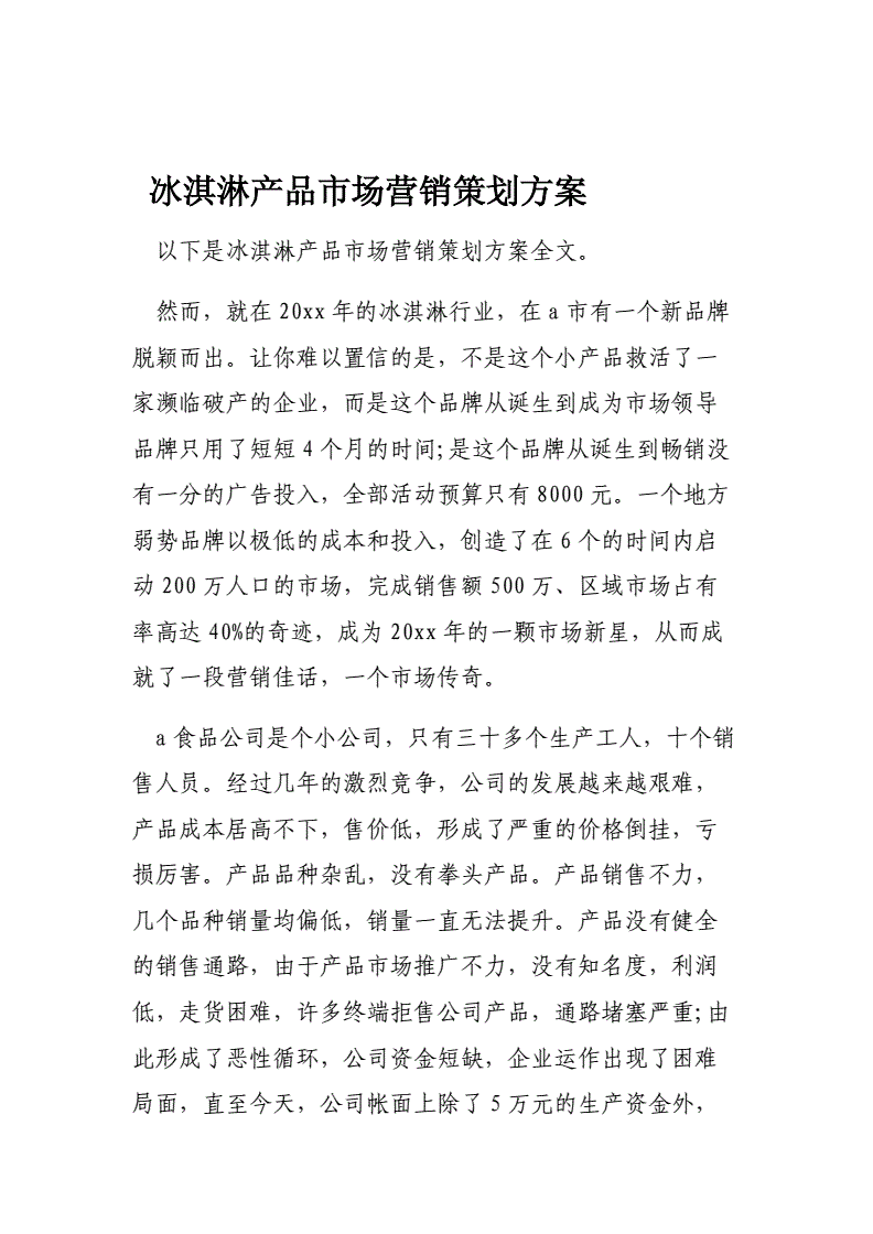 冰淇淋营销策划方案(冰淇淋营销策划方案1000)