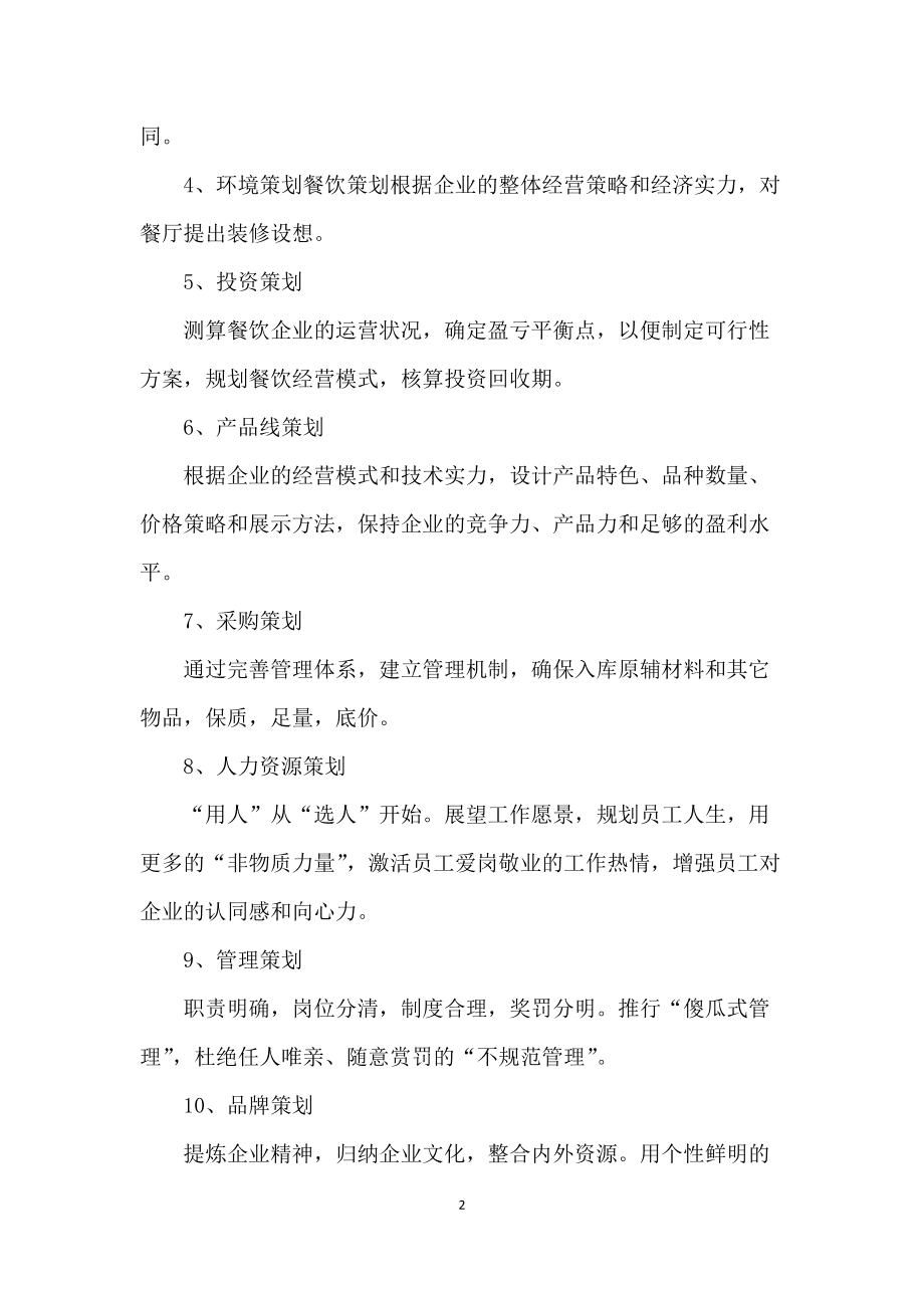 餐厅的运营离不开餐厅营销策划,以下两个餐厅营销策划方案,希望可以帮助到大家制定适合自己餐厅的餐厅营销策划方案 餐厅营销策划方案参考一“好想家”快餐厅营销策划方案 一市场营销策划书执行概括和要领 商标定价重要促销手段目标。