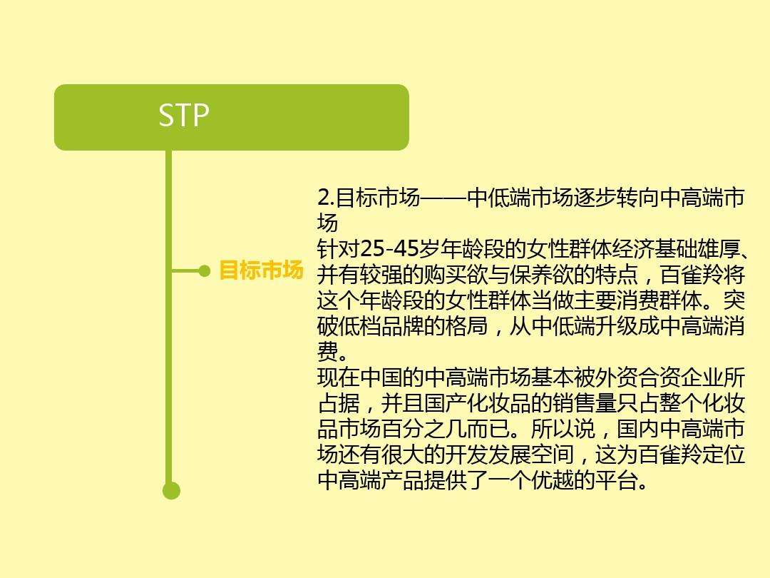 它是战略营销的核心内容STP理论中的STP分别是SegmentingTargetingPositioning三个英文单词的缩写,即市场细分目标市场和市场定位STP理论,市场细分Segmentation选择适当的市场目标Targeting和市场定位。