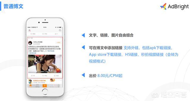 微博是人们在线创作、分享和发现内容的领先社交平台。拥有3.93亿月活用户量,1.72亿的日活用户,移动端占比高达92%。微博公开、实时的自我表达方式与平台强大的社交互动、内容的整合与分发功能相结合帮助广大广告主向用户推销品牌、产品和服务。(更多精彩揭秘:看QQ浏览器如何利用微博广告投放渠道引爆市场)